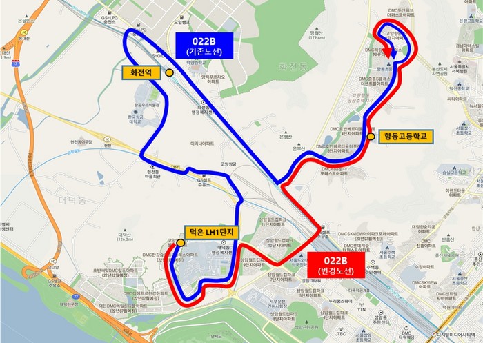 시는 서울시와 지속적인 협의를 진행한 끝에 지난 8월 25일 서울시로부터 고양시 마을버스 상암(수색동) 경유 운행에 대한 동의를 얻었다. 9월 19일부터 022B번 마을버스가 짧은 거리인 서울시(상암·수색동) 구간으로 운행을 시작했다. 022B번 마을버스 운행거리는 8km, 배차간격 20분이 단축돼 덕은지구 학생들의 통학이 원활해졌다.