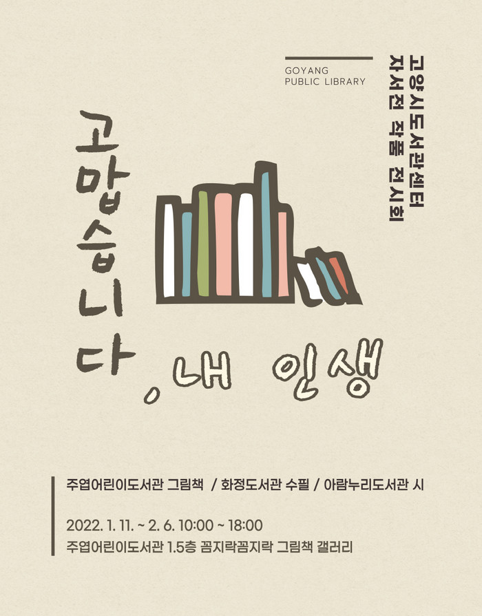 [부자동네타임즈 김인수기자] 고양시 주엽어린이도서관이 오는 11일부터 자서전 쓰기 프로젝트 "고맙습니다, 내 인생" 작품 전시회를 꼼지락 꼼지락 그림책 갤러리에서 운영한다고 밝혔다.