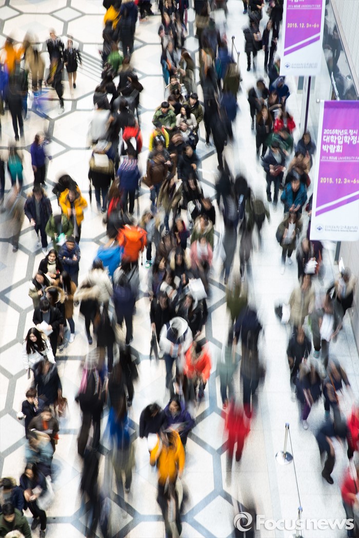 (서울=포커스뉴스) 3일 오전 서울 강남구 코엑스에서 열린 '2016학년도 정시 대학입학정보박람회' 행사장이 학생과 학부모 및 관계자들로 붐비고 있다.