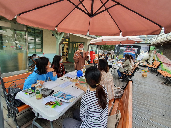 수업은 코로나19 확산 방지를 위해 일산역 전시관 야외 데크에서 2시간 동안 8명의 지역주민들과 함께 했다.