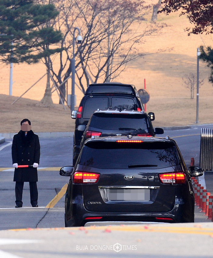 삼성그룹 창업주 고 이병철 회장의 29주기 추모식이 열린 18일 오전 경기 용인 호암미술관 인근 선영에서 이재용 삼성전자 부회장을 비롯한 홍라희 삼성미술관 리움 관장 등 범 삼성일가가 탄차량이 추모식장으로 들어서고 있다. 2016.11.18.