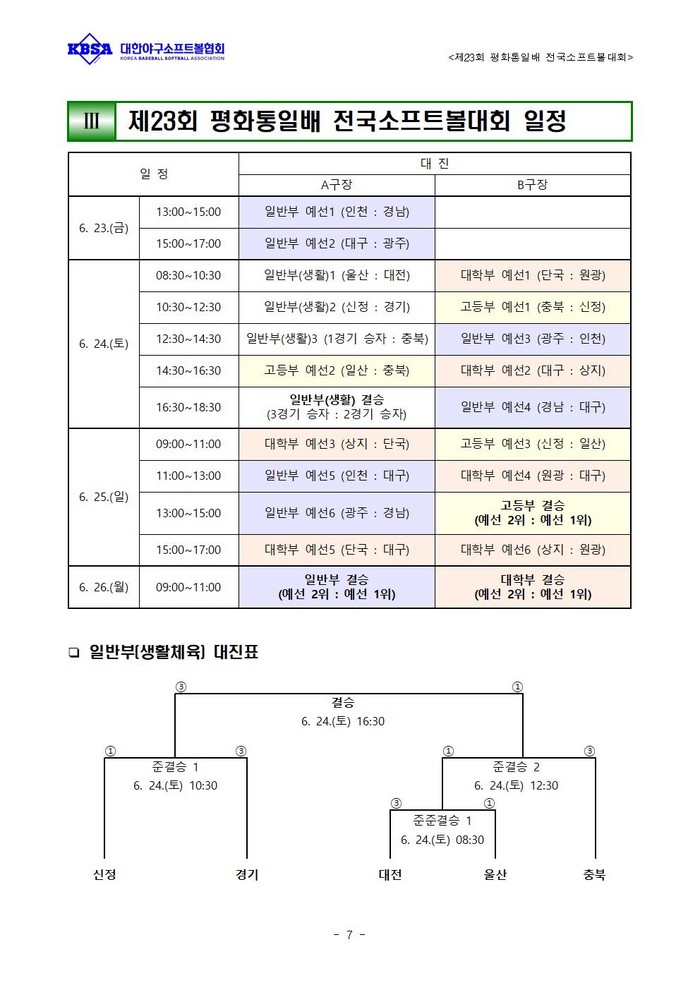 한편, 대한야구소프트볼협회는 생활체육 활성화와 야구를 사랑하는 동호인들의 건강한 여가선용을 위한 다양한 사업을 기획하고 있다. 그 일환으로 졸업생이 모교의 명예를 걸고 출전하는 ‘2023 NoBrand배 고교동창야구대회’가 오는 8월 지역별 예선을 시작한다. 6월 30일까지 참가 접수를 받고 있으며, 신청정보는 대한야구소프트볼협회 홈페이지에서 확인할 수 있다. 더불어 승강제시스템의 성공적인 정착을 보여주는 디비전리그를 한층 확대하여 진행하며, 참가동호인들로부터 많은 호응을 얻은 투수/타자/심판 강습회 역시 전국단위로 개최하여 생활체육 야구/소프트볼/베이스볼5 동호인들에 다양한 경험을 제공할 예정이다.