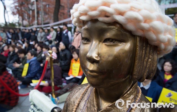 (서울=포커스뉴스) 11일 오후 서울 종로구 옛 주한일본대사관 앞에서 한국정신대문제대책협의회, 학생들을 비롯한 참석자들이 '제1204차 일본군 위안부 문제해결을 위한 정기 수요시위'를 하고 있다.