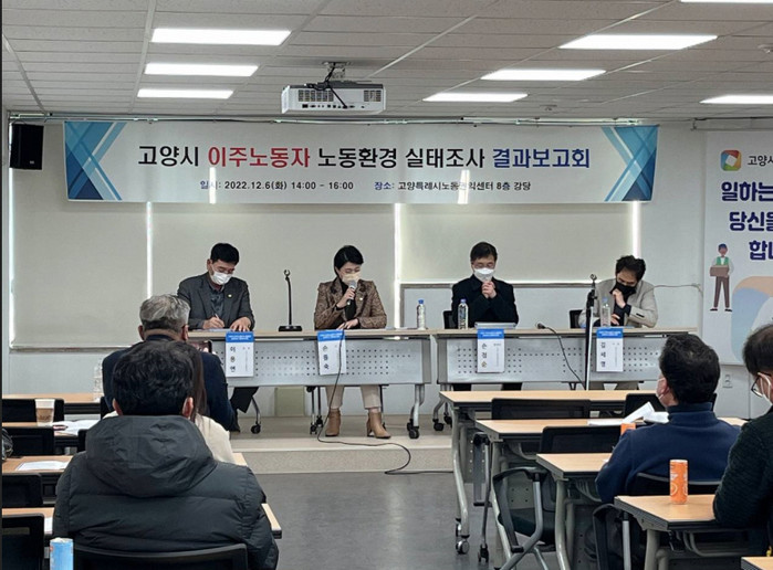 [부자동네타임즈 김인수기자] 고양특례시(시장 이동환)가 이주 노동자의 생활 실태를 파악하고 처우 개선 방안을 마련하기 위해 힘쓰고 있다. 시는 지난 6일 고양시노동권익센터에서 ‘이주노동자 노동환경 실태조사 결과보고회’를 개최했다.