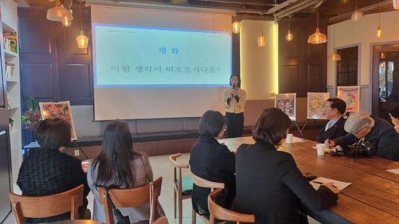 김은희 지부장의 인사말을 시작으로 IWPG 평화활동 및 홍보영상을 시청한 뒤이어 신지혜 평화강의자의 평화교육이 진행됐다.