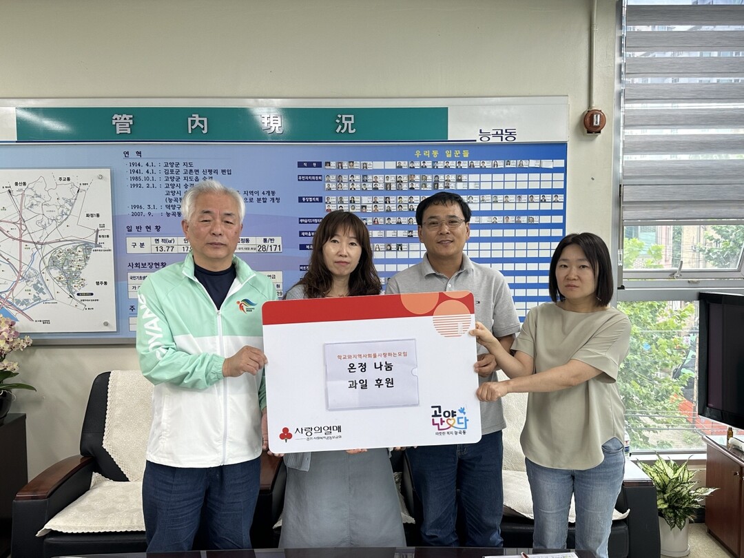 [부자동네타임즈 = 김인수 기자] 고양특례시 덕양구 능곡동은 사회복지 봉사 단체인 ‘학교와지역사회를사랑하는모임’(이하 학사모)으로부터 생활이 어려운 취약계층을 위한 나주 배 10박스를 전달받았다고 25일 밝혔다.