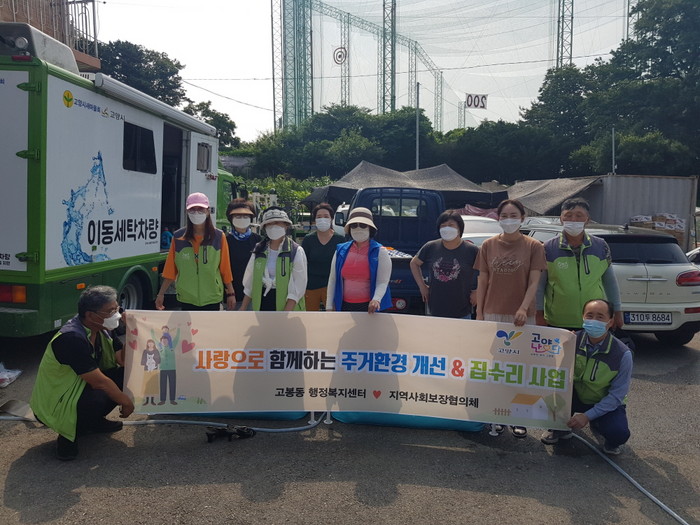 이날 고봉동 행정복지센터, 지역사회보장협의체와 MOU를 체결한 고양시 새마을회 및 자원봉사자 등 20여 명이 집기 이동, 빨래서비스, 도배, 청소, 방역 활동을 했다.