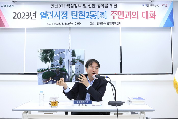 이동환 시장은 31일 탄현2동 행정복지센터에서 ‘주민과의 대화’를 열고 “1기 신도시 조성 당시 계획된 광역교통으로는 지금의 인구를 수용할 수 없는 수준에 이르렀다”며 “획기적인 교통 개선이 이뤄져야 한다”고 이같이 밝혔다.