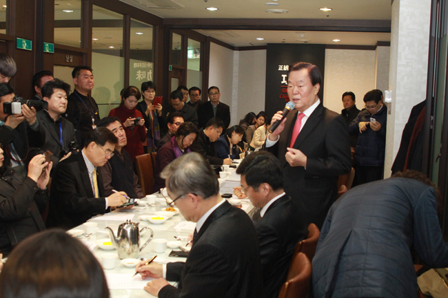[부자동네타임즈 김정태 기자] 김경재 전 대통령비서실 홍보특보가 15일 낮 12시 여의도의 한 중식당에서 한국인터넷신문방송기자협회(회장 전병길)와 단독으로 오찬 기자간담회를 열고 향후 포부 및 계획을 밝혔다.