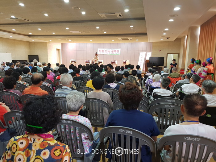 | △담양군노인복지센터는 복지타운 이용자, 재가 어르신, 방학을 맞은 어린이 250여 명을 초청해 건강한 여름나기 행사를 진행했다 |