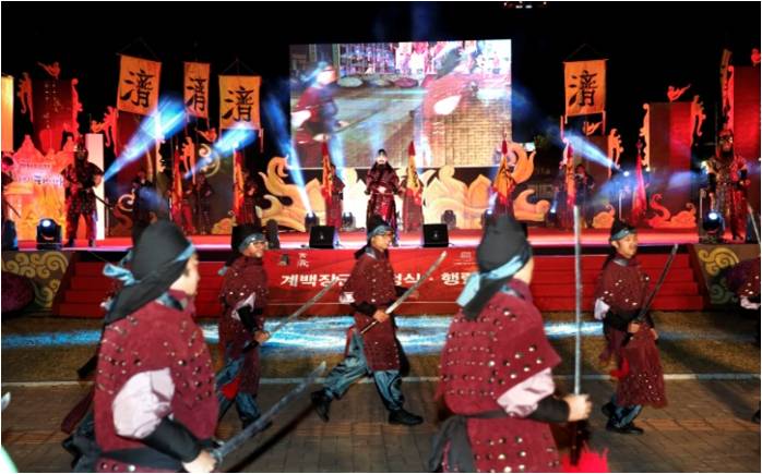 선양위 관계자는 이번 연극은 예전 백제문화제에서 선보였던 계백장군 출정식과는 전혀 다른 드라마틱한 연극으로 연출했다”면서 레이저와 각종 특수조명과 음향과 함께 인문학적 요소를 강하게 가미함으로 문학적 가치와 교육적 가치를 높이는데 주안점을 뒀다”고 설명했다.