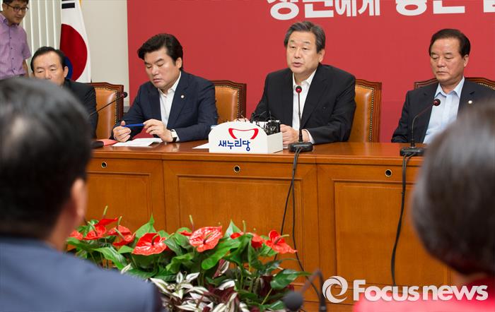 | △ 김무성 새누리당 대표가 지난 8월19일 오전 서울 여의도 국회 대표회의실에서 열린 최고중진연석회의에서 모두발언을 하고 있다. <사진제공=포커스뉴스> |