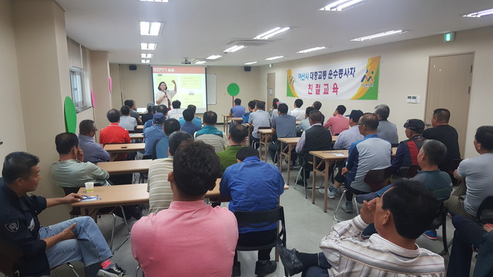 또한, 아산경찰서 교통관리계장 및 친절서비스 전문강사를 초빙하여 관내 법규위반 사례 및 영상시청 등을 통한 교통안전교육과 평소 불편사항으로 접수된 민원 사례에 대한 실습위주의 친절교육으로 실시됐다.