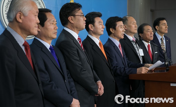 | △ 7일 오전 서울 여의도 국회 정론관에서 이대의 민주당(구 새정치민주연합) 전 경기도당 위원장을 비롯한 전국위원장 모임이 기자회견을 열고 현재 추진되고 있는 박주선 무소속 의원, 천정배 무소속 의원, 박준영 전 전남도지사 등 모든 세력이 하나로 뭉치는 통합신당 창당을 촉구하고 있다. <사진제공=포커스뉴스> |