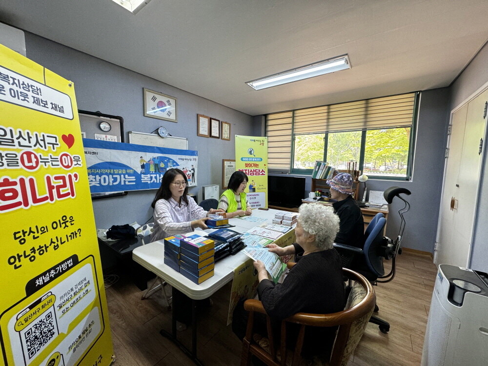 구는 경로당 어르신들을 대상으로 1:1 맞춤형 상담을 진행하여 어르신들의 상황에서 받을 수 있는 복지서비스와 평소 궁금해 했던 복지제도에 대해 안내했다. 또한 주변에 있는 어려운 이웃 발굴을 위한 신고 채널 일산서구 희나리의 이용 방법을 안내하며 가입을 독려했다.