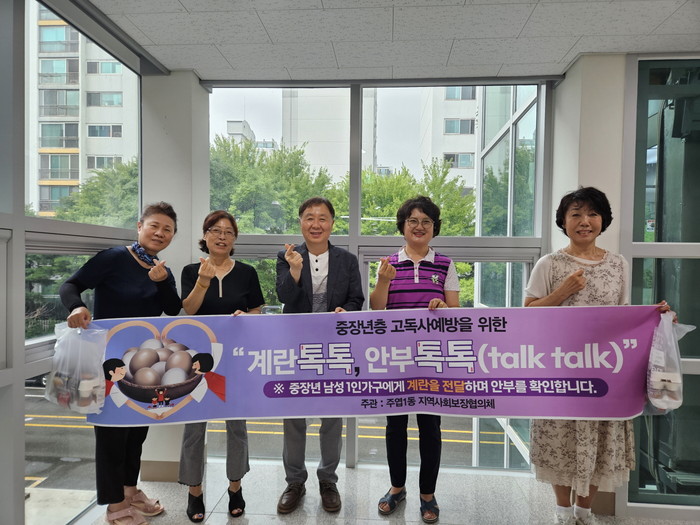 [부자동네타임즈 김인수기자] 고양특례시 주엽1동 지역사회보장협의체는 지난 11일 관내 중·장년 독거남성가구의 고독사 예방을 위한‘계란 톡톡, 안부 톡톡(talk talk)’사업을 실시 했다고 밝혔다.