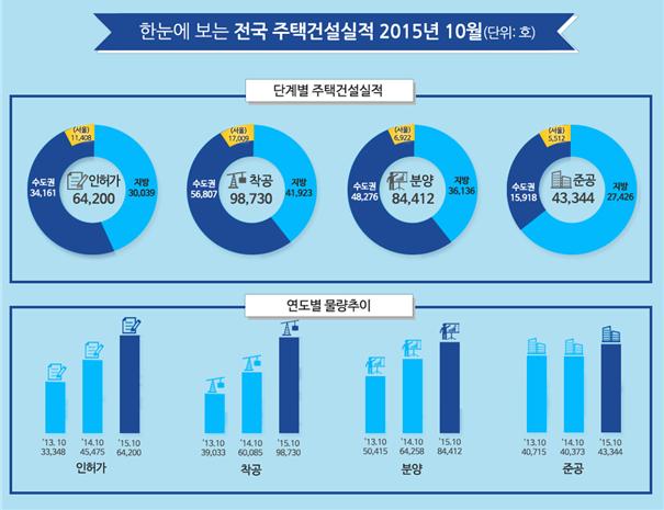 착공 실적은 10월 9만 8730가구, 1~10월 누적 56만874가구로 각각 64.3%, 44%가 늘었다.