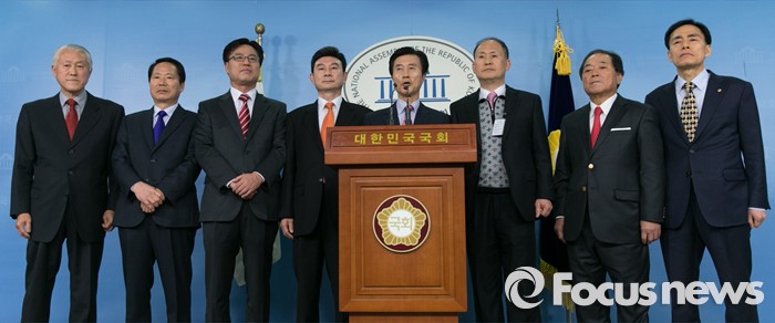 | △ 7일 오전 서울 여의도 국회 정론관에서 이대의 민주당(구 새정치민주연합) 전 경기도당 위원장을 비롯한 전국위원장 모임이 기자회견을 열고 현재 추진되고 있는 박주선 무소속 의원, 천정배 무소속 의원, 박준영 전 전남도지사 등 모든 세력이 하나로 뭉치는 통합신당 창당을 촉구하고 있다. <사진제공=포커스뉴스> |