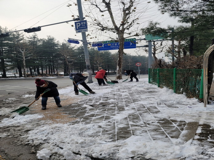 또한, 제설봉사단은 비탈길 보행로 등 제설 취약구역에 중점적으로 제설작업을 실시하여 관내 제설작업에 큰 힘을 보탰다. 특히 가파른 계단으로 보행자의 안전사고 위험이 가장 큰 안곡육교의 제설작업도 신속하게 마무리하였다.