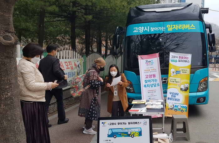 이날 찾아가는 복지상담소와 고양시 찾아가는 일자리버스를 연계해 복지 상담, 복지사업 홍보를 실시하고 취업, 구인구직 등 일자리 상담서비스도 제공해 주민 호응을 얻었다.
