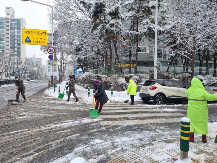 또한, 일산3동 주민자치회 위원 및 예비군 일산3동대에서 제설작업에 함께 나서며 시민들의 안전과 편의 확보에 만전을 기하였다.
