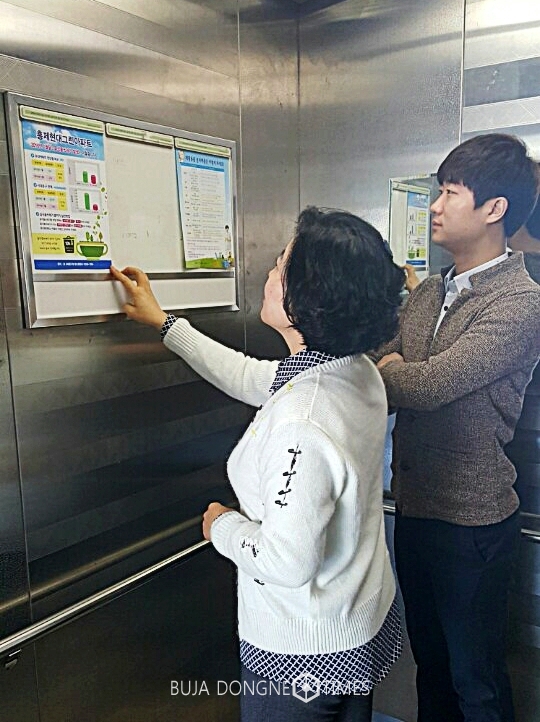 누구나 한 눈에 감량효과를 알아 볼 수 있도록 그래프를 이용한 홍보물을 제작해 공동주택 내 엘리베이터와 게시판, 현관에 부착하고 관리사무소에도 배포하고 있다.