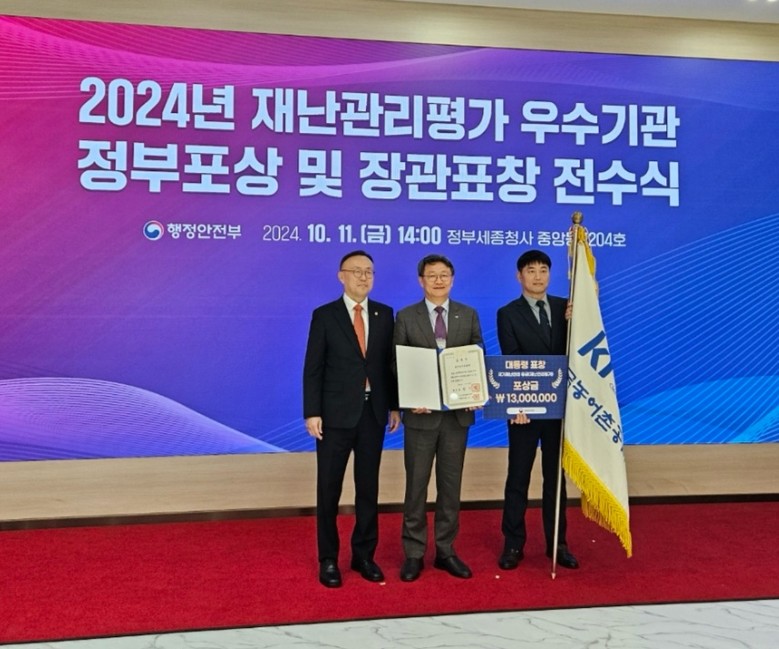한국농어촌공사는 11일 행정안전부 주관으로 열린 ‘2024년 재난관리 평가 정부포상 전수식’에서 대통령표창을 수상하며, 탁월한 안전관리 역량과 재난대응 성과를 인정받았다.