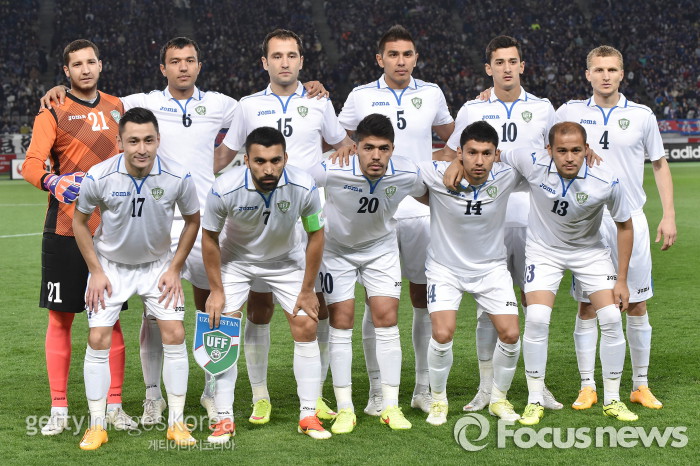 | △ <도쿄/일본=게티/포커스뉴스> 우즈베키스탄 국가대표팀이 4월1일 오전(한국시간) 일본 도쿄에서 열린 일본과의 A매치 평가전에 앞서 기념촬영을 하고 있다. (C)게티이미지/멀티비츠 |