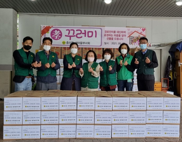 또한, 중산동 통장협의회 한국일 회장은 “항상 중산동 지역사회를 위해 힘써 주시는 중산동 새마을부녀회에서 가정의 달 5월을 맞아 준비한 효(孝)꾸러미 사업에 함께 할 수 있어서 매우 기쁘게 생각한다”고 덧붙였다.