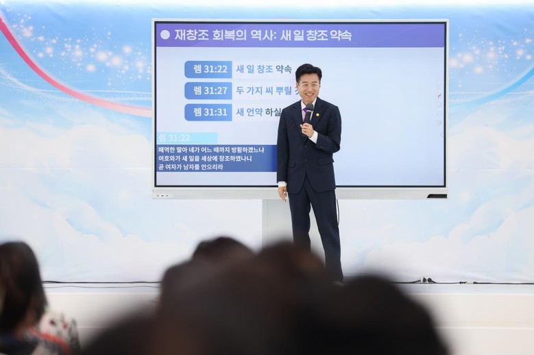 말미에 “선입견과 고정관념을 내려놓고 하나님 나라의 증거와 창조 역사가 있는 신천지로 나아가자”고 당부한 그는 대중가요 ‘너와 나’ 한 소절을 불러 참석자의 박수와 환호를 이끌었으며, 현장은 활기 있는 분위기로 이어졌다.