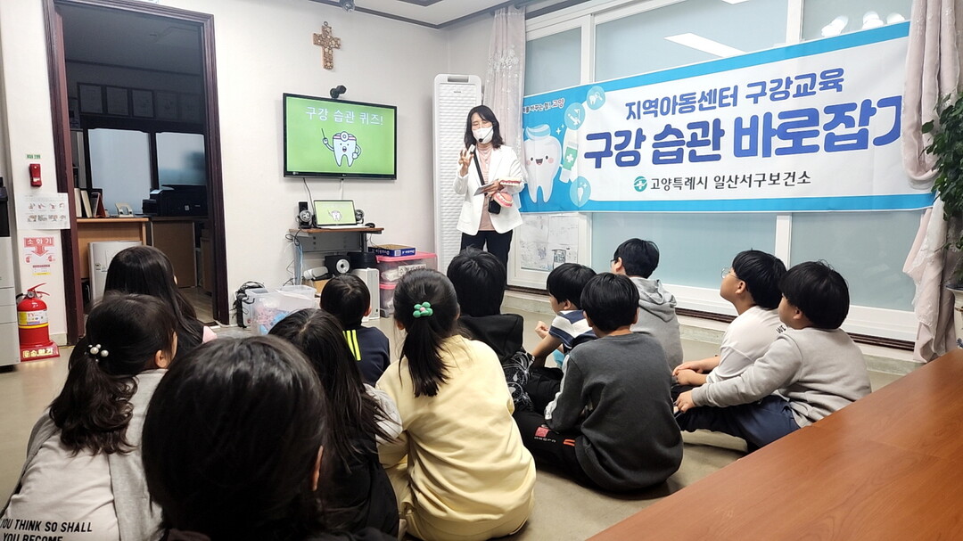 구강관리 습관 바로잡기 교육은 일산서구보건소 치위생사가 관내 지역아동센터에 방문하여 진행하는 생활터 중심 교육이다. 교육은 ▲치아의 역할 및 중요성 ▲사고로 인한 치아 손실 예방 ▲충치 발생 원인과 예방 ▲올바른 칫솔질 방법 ▲탄산음료 등 충치유발식품 먹지 않기 등의 내용을 체험학습 방식으로 진행한다.