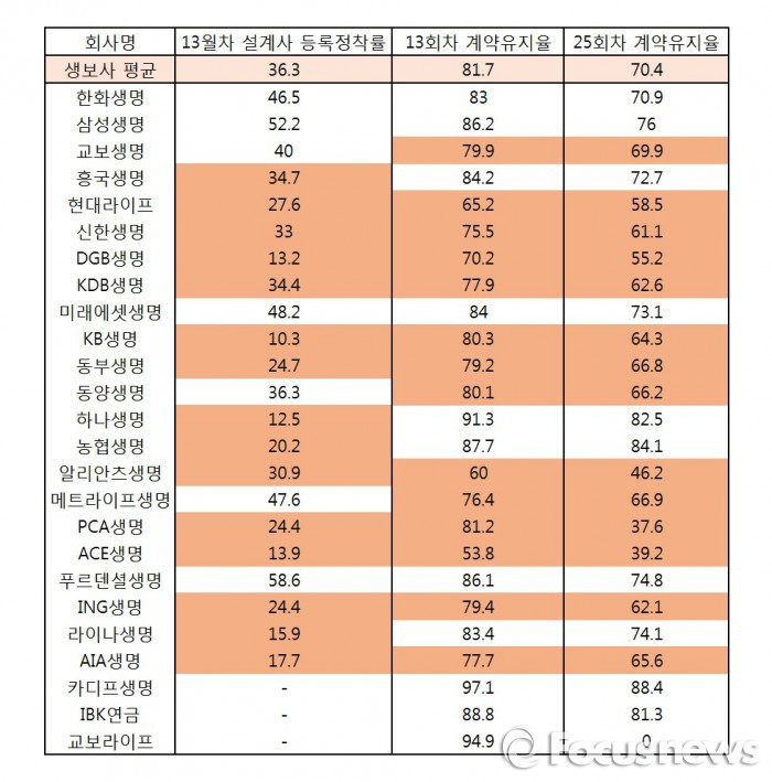 이 기간 중 계약유지율이 낮다는 것은 계약 이탈자가 많은 것으로 분석, 보험설계사의 고객 관리가 제대로 이뤄지지 않다고 평가한다. 보험설계사는 13회차와 25회차의 계약유지율에 따라 수당이 확정되기 때문이다.