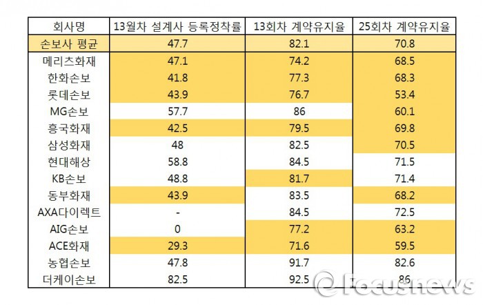 이들 업체들의 보험 계약유지율은 업계 평균보다도 낮은 것으로 집계됐다.