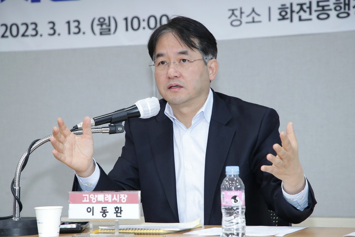 이동환 시장은 13일 화전동과 대덕동에서 각각 ‘주민과의 대화’를 열고 “수도권정비계획법, 과밀억제권역 등 법과 제도로 기업 하나 들어오지 못하게 고양시를 규제하고 있다”며 “고양시가 자족도시로 갈 수 있는 유일한 해법은 경제자유구역 지정”이라고 고양시 핵심정책을 공유했다.