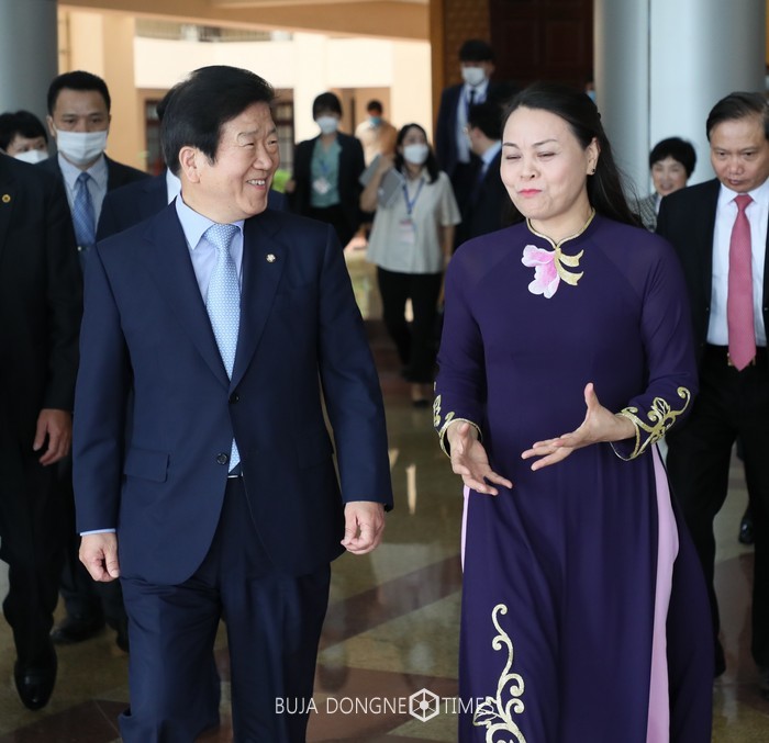 [부자동네타임즈 이교영 기자]박병석 국회의장은 1일 오전(현지시간) 베트남 닝빙성 청사에서 응우옌 티 투 하 닝빙성 당서기와 면담을 갖고 첫 공식 일정을 시작했다.