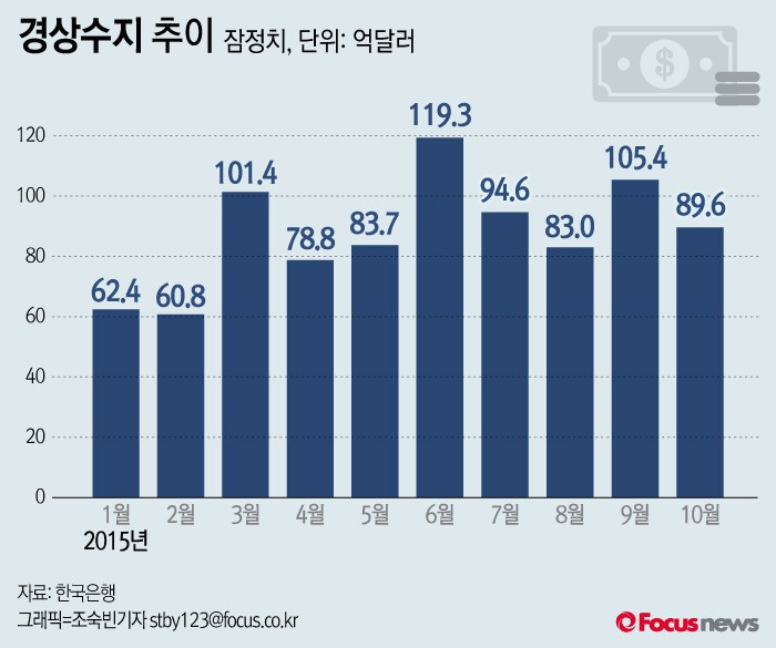 [부자동네타임즈 이현재 기자] 올 10월 중 경상수지가 89억6000만 달러 흑자를 기록해 44개월 연속 흑자행진을 이어갔다.