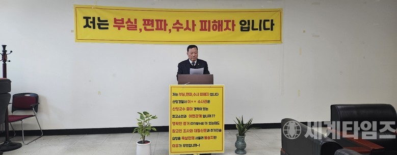 K모씨는 지난 28일 산청군청 기자실에서 기자회견을 한 뒤 산청경찰서 앞에서 "산청경찰서 수사관은 명백한 증거가 있는데도 사건을 서둘러 불송치한 이유는 무엇이며 산청군수 출마자인 피고소인과 어떤 관계냐"라고 적힌 피켓을 목에 걸고 1인 시위를 벌였다고 29일 본지와 통화에서 밝혔다.