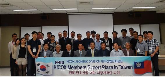 [익산=부자동네타임즈 이정술 기자] 한국산업단지공단 익산지사(지사장 김호범)는 8/9(화)~12(금)까지 익산 미니클러스터 회원기업중 탄소산업 서브 미니클러스터 회원기업을 대상으로 ‘대만 시장 진출을 위한 해외시장개척단’을 파견하였다. 파견 기업은 ㈜에니에스, ㈜유광화학, ㈜다인스, ㈜씨에이피코리아, 제이씨케미컬㈜, ㈜쓰리제이 등 6개 회원기업이고, 처음으로 탄소산업 분야의 해외시장개척단 활동으로 현지 기관 및 기업 방문을 통하여 보유하고 있는 기술과 산업 동향에 대해 많이 배우고 올 수 있었다.
