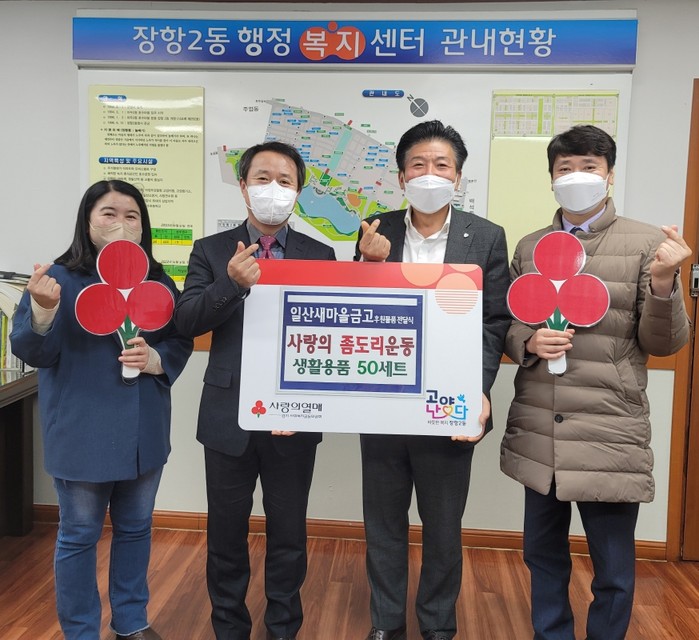 [부자동네타임즈 김인수기자] 고양특례시 일산동구 장항2동(동장 박인석)은 지난 30일 일산새마을금고(이사장 홍두표)로부터‘사랑의 좀도리운동’후원물품 50세트를 전달받았다고 밝혔다.