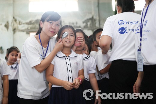 △ 효성 미소원정대가 베트남 호치민시 인근의 초등학교를 방문해 현지 어린이들의 기초 건강검진을 진행 하고 있다. <사진제공=효성> |