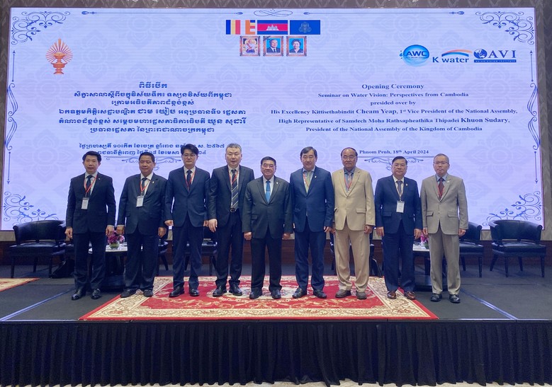 한국수자원공사(K-water, 사장 윤석대)는 4월 18일 캄보디아 프놈펜시(市) 현지에서 아시아물위원회(Asia Water Council)와 캄보디아 국회(의장 쿠온 수다리, Khuon Sudary)간 물 분야 협력 강화를 위한 ‘국가 물 비전 세미나(National Water Vision Seminar)’를 공동 개최했다.