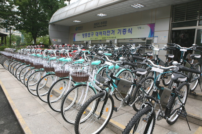 구에서 운영 중인 무인 대여소는 구청 광장과 당산역 두 군데로, 인터넷으로 회원가입만 하면 누구나 무료로 자전거를 빌릴 수 있다.