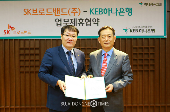 [부자동네타임즈 이현재 기자]KEB하나은행은 22일 오후 서울시 중구 본점에서 SK브로드밴드(대표 이형희)와 소상공인 창업 및 사업 활성화 지원을 위한 업무협약을 체결했다고 밝혔다.