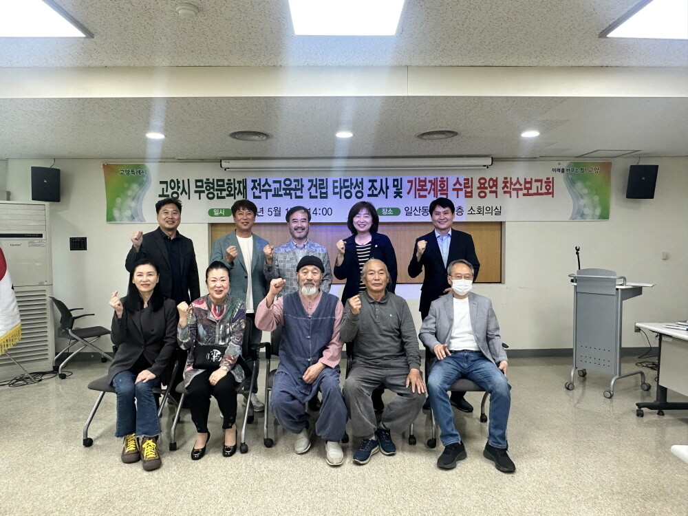 [부자동네타임즈 = 김인수 기자] 고양특례시는 무형유산 전수교육관 건립을 위해 지난 17일 일산동구청 소회의실에서 무형유산 보유자, 시의원, 시청 관계자가 참여한 가운데‘고양시 무형유산 전수교육관 건립 타당성 조사 및 기본계획 수립 용역’착수보고회를 개최했다고 밝혔다.