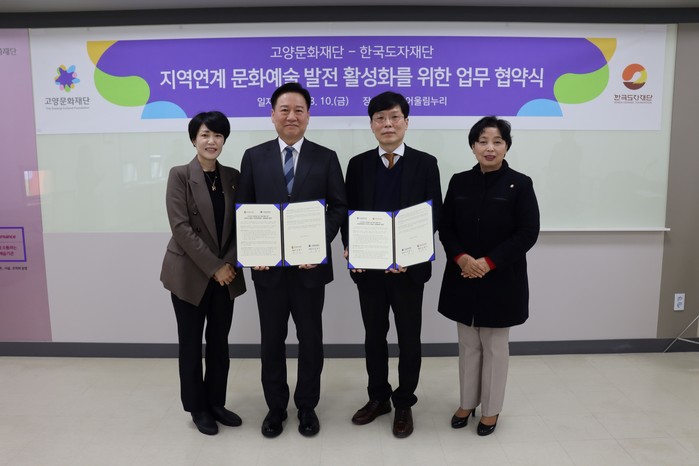 [부자동네타임즈 김인수기자] 국내 대표 문화예술기관인 고양문화재단은 지역연계 문화예술 발전 및 활성화를 위해 상호 교류를 통한 협력체제를 구축하고자 업무 협약(MOU)을 체결했다.