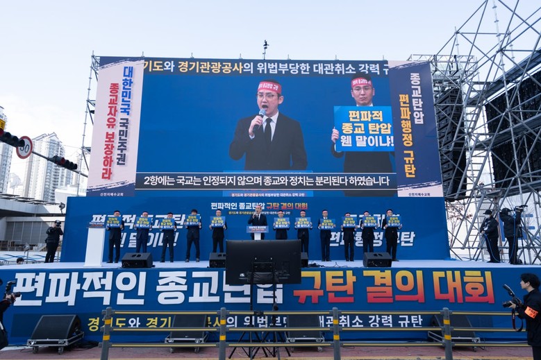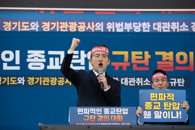 또한 "경기도와 경기관광공사는 막연한 안보 우려를 내세워 대관을 취소했으나, 실제로는 특정 종교단체의 편을 들어 신천지예수교회의 대관을 취소한 것이라는 의혹이 있다"며 "이는 공권력특정 종교의 편에 서서 다른 종교를 탄압한 중대한 문제"라고 말했다.