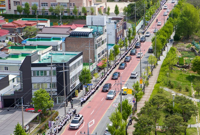 2. 지난 4월 14일 이만희 총회장이 광주 베드로지파 본부성전에 방문하자 이를 마중을 나온 환영도열의 모습.