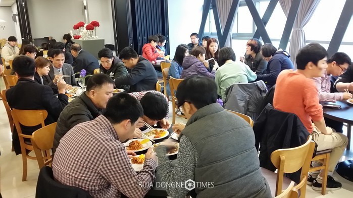 | △(사)한국장애인문화광주광역시협회〔부설〕장애인문화예술지원센터 회장과 장애우들은 "국제라이온즈협회 광주지구는 5개 클럽이 실시하는 '사랑의 자장면·탕수육 나눔 봉사'에 진심으로 감사의 인사를 드리며, 장애우 모두는 맛있게 음식을 함께 하고 있다 |