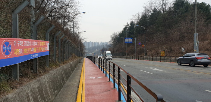지난 6월 행정안전부가 주관하는 ‘2020년 자전거도로 사고위험지역 안전개선’ 공모 사업 대상지로 선정돼, 시는 지난 2달간 800m에 이르는 구간에 양방향 자전거 전용도로 설치 사업을 시행했다.