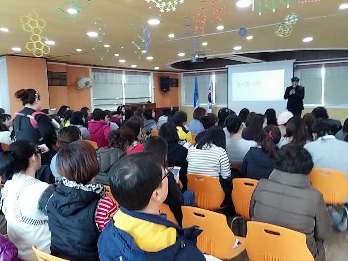 한빛어린이집 신학기 학부모님을 대상 교육에서 (주)SC네트워크 김승현 본부장이 키즈판 설명을 하였다.